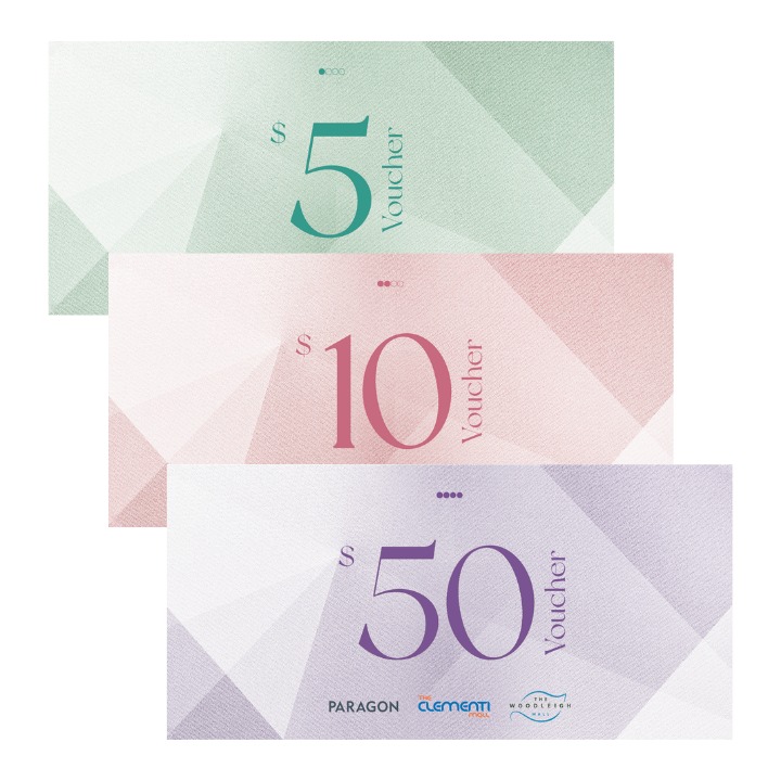 They are available in $5, $10 and $50 denominations and are accepted at participating stores in The Clementi Mall, Paragon and The Woodleigh Mall.
